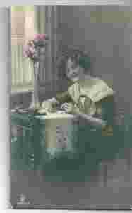Pocztówka-Dziewczyna pisząca list