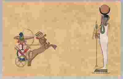 pocztówka EGIPT Mitologia Bogini Rydwan koń 1950