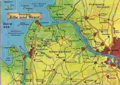 pocztówka ELBE i WESER Mapka NIEMCY