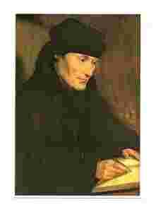 Holenderska pocztówka z reprodukcją portretu Erazma z Rotterdamu ...