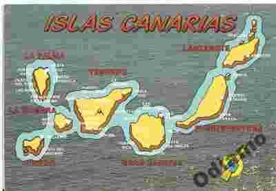Pocztówka Hiszpania Wyspy Kanaryjskie mapa obieg