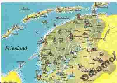 Pocztówka Holandia Fryzja mapa bez obiegu