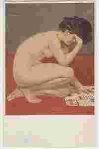 Pocztówka - karty do gry, akt - starsza