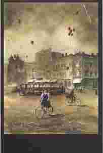 pocztówka KATOWICE Tramwaj i rowerzyści CHUDY