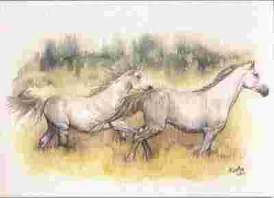 pocztówka KONIE Para siwków SOŁTYS