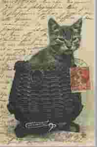 pocztówka KOT W KOSZU 1911 reprint