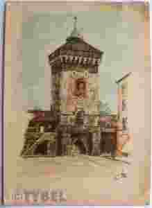 Pocztówka Kraków Br. Floriańska akwarela Schonborn