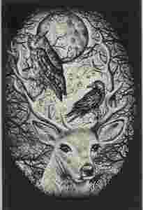 pocztówka LAS SOWA JELEŃ I KRUK Pióro