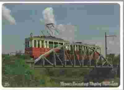pocztówka LUTOMIERSK Most na Nerze Tramwaj