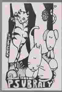 pocztówka PSUBRATY grafika psy i kot SZYMCZYK