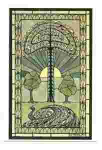 witraża z pawiem na tle symbolicznego drzewa życia ...
