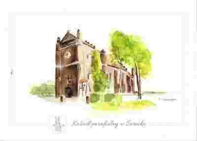 pocztówka SEROCK Kościół parafialny akwarela HERB