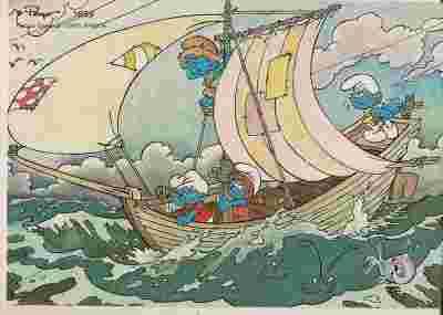 pocztówka SMURFY Na morzu PAYO 1989