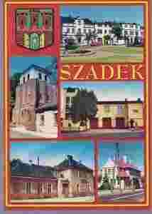 pocztówka SZADEK Dworzec Dzwonnica Rynek HERB