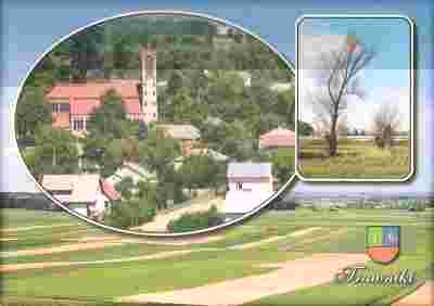 pocztówka TRAWNIKI Kościół HERB