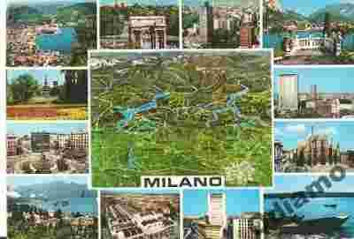 Pocztówka Włochy Mediolan mapa obieg 1972