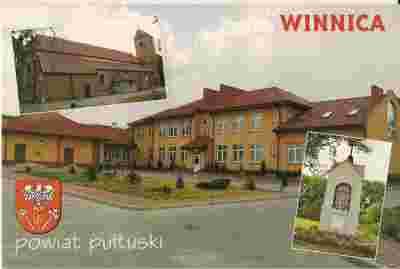pocztówka WINNICA Kościół Kapliczka Szkoła HERB