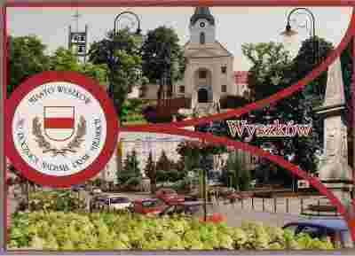 pocztówka WYSZKÓW Kościół Centrum HERB