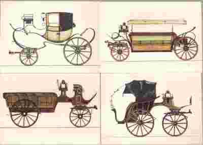pocztówki POWOZY KONNE z XIX w BALICKA 4 sztuki