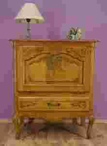 Z ogromną przyjemnością zapraszam do licytacji, której przedmiotem jest wspaniały barek ludwikowski. Barek posiada jedne drzwiczki, otwierane są one ku dołowi. Drzwiczki zdobione są dekoracyjnymi obramowaniami, posiadają piękne rzeźbienia w postaci elementów wolutowych oraz wspaniałego motywu muszli i roślinności. We wnętrzu znajduje się szklana półka- całość jest podświetlona. Pod drzwiczkami znajduje się jedna szuflada, posiada ona piękne rzeźbienia oraz wytworny uchwyt.