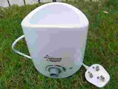 Elektryczny podgrzewacz do butelek szybko i bezpiecznie podgrzeje mleko oraz pokarm dla niemowląt, zachowując jednocześnie wszystkie składniki odżywcze, niezbędne dla prawidłowego rozwoju dziecka. Wystarczy umieścić butelkę albo słoiczek z pokarmem w podgrzewaczu, a następnie ustawić odpowiednią temperaturę za pomocą pokrętła, zgodnie z instrukcją. Czas podgrzewania zależy od ilości pokarmu i jego temperatury początkowej. Podany czas podgrzewania (4 min) dotyczy podgrzania 150 ml mleka o temperaturze pokojowej (20°C).