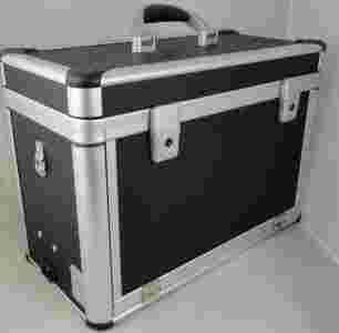 Wykonany z aluminium w kolorze czarnym i srebrnym. Można go zamykać na klucz (jest w zestawie kufra).