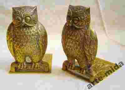Podpórki do książek - sowy - mosiądz