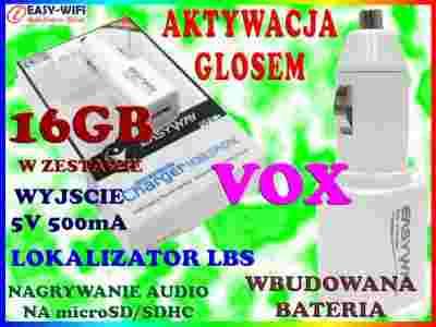 PODSŁUCH DYKTAFON GSM ŁADOWARKA SAMOCHODOWA +16GB