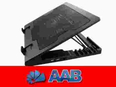 AAB Cooling NC38 Czarna Podstawka pod laptopa to cicha aluminiowa podstawka chłodząca, mobilna podstawka, pracuje generując hałas tylko 15 db, co czyni konstrukcje wyjątkowo cichą w stosunku do konkurencji. Duży wentylator zamontowany centralnie zapewniając niska emisję hałasu. Użycie AAB Cooling NC38 Czarnej podstawka pod laptopa pozwala utrzymać niską temperature laptopa, zabezpiecza przed przegrzaniem, a zarazem uniemożliwia wystąpienie kilku problemów: efekt spadku wydajności i wyraźne spowolnienie działania, zapalenie się baterii jak również spalenie procesora. Bardzo rozsądnym rozwiązaniem jest ochrona sprzętu i jego praca w odpowiednich warunkach. Dodatkowo produkt znacznąco poprawia warunki pracy na laptopie, dzieki odpowiednim wyprofilowaniu podstawki oraz podstawkom antypoślizgowym zamontowanym dwustronnie pod oraz nad podstawką. Dodatkowo model NC38 wyposażony jest w regulacje kąta nachylenia podstawki (w zakresie od 20° do 40°) - umożliwia to dopasowanie wysokości monitora, szczególne polecane dla poprawy warunków pracy.