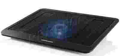Podstawka MODECOM SILENT FAN MC-CF13 jest bardzo solidna. Została wykonana z wysokiej klasy tworzywa. Jej górna część jest pokryta specjalną, siatkowaną powierzchnią, która dzięki licznym otworom, zapewnia doskonałe odprowadzenie ciepła emitowanego przez rozgrzany laptop. Bezpośrednio pod nią znajduje się bardzo cichy i wydajny, podświetlany na niebiesko diodami LED, 14-centymentrowy wentylator chłodzący.
