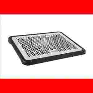 WENTYLATOR -> Napięcie znamionowe: 5VDC -> Prąd znamionowy: 0,15 +/- 0,02A -> Prędkość obrotowa: 900 +/- 15% -> Przepływ powietrza: 68,3CFM -> Natężenie hałasu: 16dBA +/- 10% -> Łożyskowanie: Hydrodynamiczne Aluminiowa powierzchnia Bardzo cichy 160 mm wentylator Antypoślizgowe podkładki gumowe Złącze USB z przejściówką Specjalne otwory zapewniające dodatkowe chłodzenie Antypoślizgowy design Wyjątkowy kształt otworów dolotowych w wentylatorze gwarantuje bezgłośny i wydajny przepływ powietrza Instrukcja na pudełku: polska, angielska, węgierska