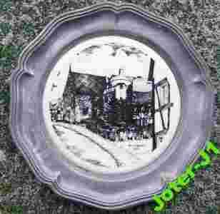 PODSTAWKA CYNOWO-CERAMICZNA Z MOTYWEM MIEJSKIM