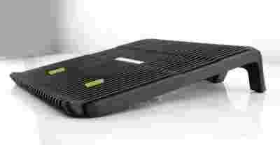 Antypoślizgowe podkładki utrzymują notebook w bezpiecznej pozycji.