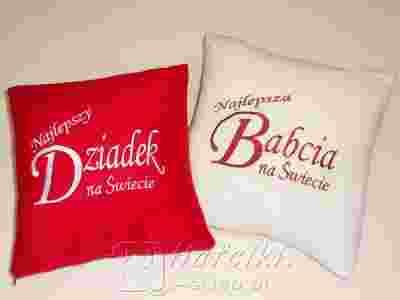 Śliczna milutka podusia z haftowanym napisem - dedykacją na Dzień Mamy, Taty, Babci, lub inną okoliczność.
