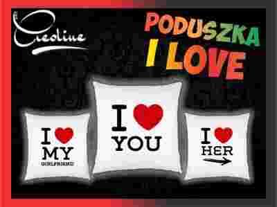 Poduszka I LOVE z twoim NAPISEM nadrukiem PREZENT%