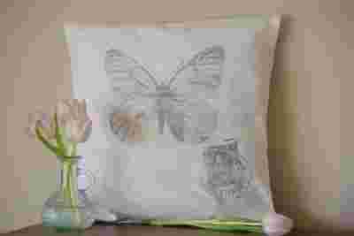 Poduszka poszewka Shabby Chic Vintage napis motyl