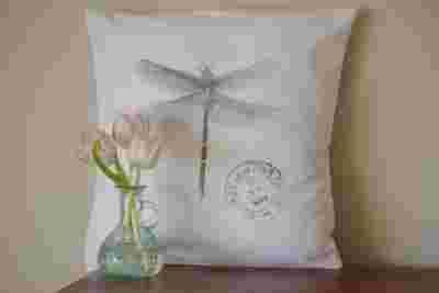 Poduszka poszewka Shabby Chic Vintage napis ważka