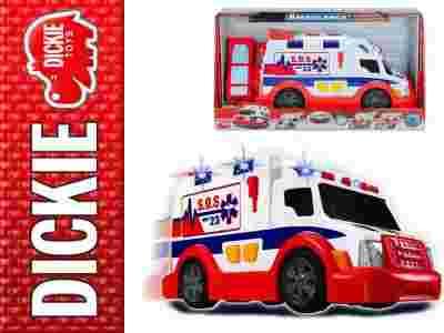 Rewelacyjny zestaw, który z pewnością spodoba się każdemu chłopcu. Ambulans karetka pogotowia z dźwiękiem i światłem posiadający funkcję wolnego biegu. Zabawka wyprodukowana przez znaną niemiecką firmę Simba Dickie Group. Spojler posiada jeszcze jedną ukryta funkcję, ponieważ zwalniania blokadę tylnych drzwi co spowoduje ich samoczynne otwarcie oraz wysunięcie rampy, dzięki niej nosze z poszkodowanym bez problemu dostaną się do wnętrza samochodu, a pacjent otrzyma natychmiastową pomoc. Podczas akcji boczny suwak umożliwi sanitariuszom oraz ratownikom medycznym na szybki dostęp do niezbędnych akcesoriów, dzięki którym będą mogli uratować życie niejednej osobie. Znajdą tam aparat tlenowy, lekarstwa oraz inny sprzęt specjalistyczny. Pomysłowe rozwiązanie samego opakowania pozwoli na szybkie przetestowanie funkcji pojazdu bez potrzeby jego wyciągania.