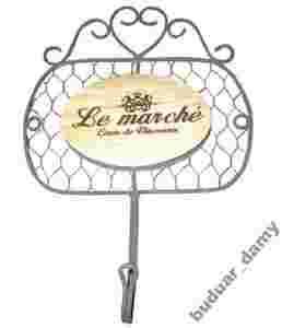 Jest ozdobiony drewnianą tabliczką z napisem "Le marche".