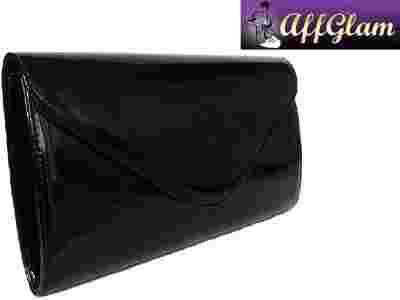 POJEMNA LAKIEROWANA KOPERTÓWKA CZARNA CLUTCH