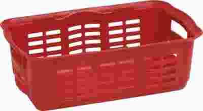Koszyk wchodzący w skład serii Alfa 1. Poręczny, wykonany z tworzywa sztucznego koszyk do przechowywania suchych produktów, który z pewnością przyda się w każdym domu. Dzięki niemu warzywa i owoce, gazety lub rozmaite gadżety przydatne w kuchni i jadalni znajdą odpowiednie miejsce. Znajdujące się po bokach uchwyty ułatwiają przenoszenie. Produkt dostępny w kolorze czerwonym. Wymiary: 312x181x106 mm
