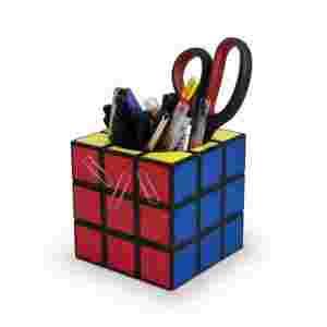 Pojemnik na przybory biurowe w kształcie kostki Rubika.