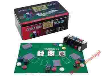 Bardzo ładnie wykonany zestaw do gry w odmianę Pokera - Texas Hold'em składa się z: - 200 żetonów - 4g w czterech kolorach, - 1 żetonu Dealer, - 1 żetonu Small Blind, - 1 żetonu Big Blind, - maty do gry 90x60 cm, - dwóch talii kart do Pokera. Cały wyżej wymieniony zestaw zapakowany jest w metalowe pudełko. Do zestawu dołączona jest instrukcja zawierająca zasady gry. Gra przeznaczona jest dla 2 do 10 osób. Pierwszą osobą która opisała grę w Pokera był Jonathan H. Green w 1834 roku. Gra ta była popularna wśród pasażerów statków, które pływały po rzece Missisipi. Jest również znana odrębna teoria iż w pokera grali Chińczycy, już ok. roku 900 n.e. Możliwe jest także iż poker wywodzi się ze staroperskiej gry "as nas", reguły tej gry perscy żeglarze przekazali osadnikom francuskim w Nowym Orleanie. Jednak najpopularniejszą odmianą Pokera na świecie jest Texas Hold'em, który w Polsce znany jest głównie jako odmiana sportowa. W rozgrywce może uczestniczyć od 2 do 10 graczy, używana jest pełna talia 52 kart. POLECAMY!!!