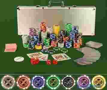 Profesjonalny duży zestaw gry w pokera (jak w Los Angeles), 500szt z 7 nominałami na odblaskowej powierzchni.