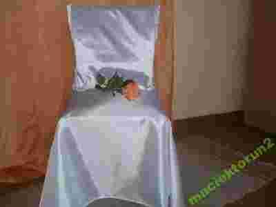 UNIWERSALNY POKROWIEC NA KRZESŁO uszyty z śnieżnobiałego atłasu, zawiązywany z tyłu w kokardę w najniższej cenie na Allegro