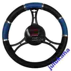 Pokrowiec jest uniwersalny, w kolorze czarno-niebieskim. Jako element wyposażenia samochodu wpływa w znaczący sposób na atrakcyjność wizualną wnętrza auta, a także podnosi komfort jego prowadzenia. Produkt wykonany z tworzywa skóro-podobnego. Gwarantuje trwałość użytkowania, a zarazem zabezpiecza kierownicę przed wytarciem. Produkt renomowanej firmy JACKY AUTO SPORT. Super jakość przy stosunkowo niskiej cenie i łatwym montażu.
