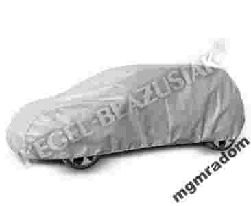 Wodoodporny pokrowiec z systemem mikro-porów i otworów wentylacyjnych odprowadzających wilgoć z pod pokrowca. Górna, przednia i tylna część pokrowca wykonana jest ze 100 % wodoodpornego materiału, natomiast boki są wykonane z trudno przemakalnego materiały przepuszczającego gromadzącą się pod pokrowcem parę wodną. Dodatkowo pokrowiec posiada otwory wentylacyjne. Całkowicie odporny na promienie słoneczne i czynniki atmosferyczne, chroni samochód przed matowieniem i płowieniem lakieru od słońca, wżerami w lakierze i większością zarysowań zewnętrznych. Pokrowiec jest odporny na kwaśne deszcze, ptasie odchody, soki z drzew, promienie słoneczne (UV), wiatr, śnieg, szron ...Mocowany za pomocą pewnego, tradycyjnego ściągacza z linką wokół całego samochodu, wykonany z wytrzymałego, miękkiego w dotyku materiału, dzięki czemu pokrowiec można bezpiecznie używać podczas wiatru, nie ryzykując porwania pokrowca, czy zarysowań lakieru. Nie nasiąka wodą, nie przymarza, nie starzeje się i nie traci koloru. Po złożeniu ma małe wymiary. Z praktyczną torbą do przechowywania pokrowca.