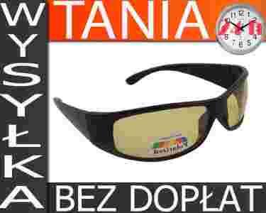 - Kolor: czarne lakierowane oprawki, szkła w żółtym odcieniu.