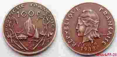 POLINEZJA FRANCUSKA 100 FRANCS 1988 GÓRA I ŁÓDKA