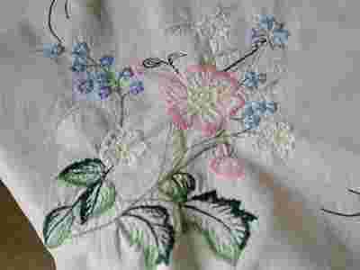 Biała, piękna serweta wykonana z bawełny. Ozdobiona haftowanymi, polnymi kwiatami.